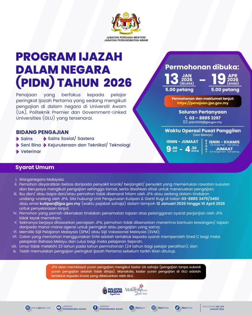 Biasiswa JPA | Program Ijazah Dalam Negara (PIDN)