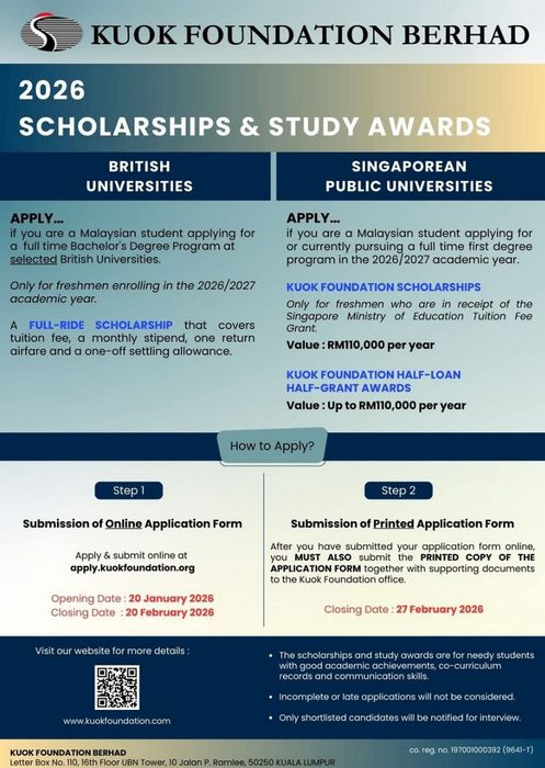 Biasiswa Kuok Foundation Berhad – Undergraduate Studies
